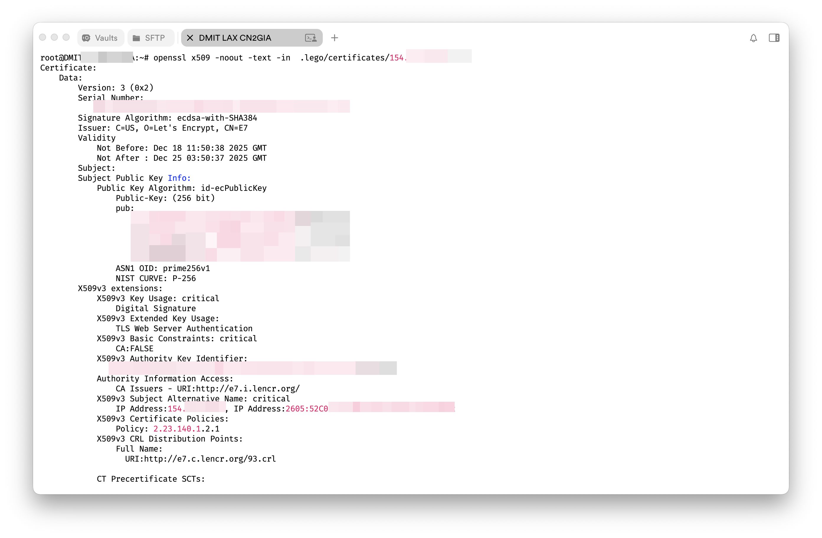 26 分钟前 回复了 yeyeye 创建的主题 › 分享发现 › Let's Encrypt 的免费 IP SSL 证书已经可以使用了 |