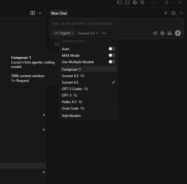 还多了一个"自研"的模型Composer.据说是更快更好.
