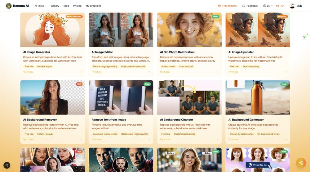AI Banana 是新一代人工智能图片编辑平台,集成了最先进的 AI 技术,为您提供专业级的图片处理体验。