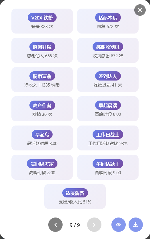 之前开发的插件 V2EX Stats 新增了年度报告功能,安装插件后首页会显示年度报告按钮,只做了简单的分析和归类大家看个乐子。