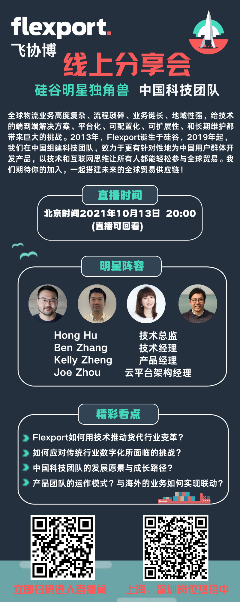 高能预告! Flexport 飞协博中国科技团队线上分享会即将开播!